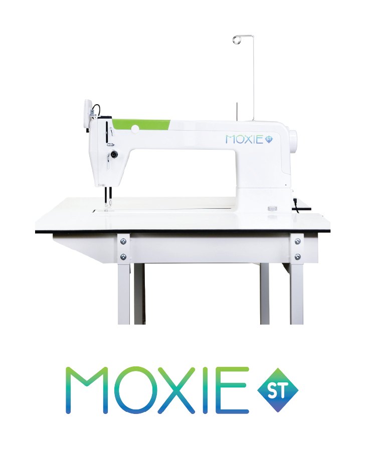 Esta nueva versión de MOXIE ST es la máquina perfecta para acolchar comodamente sentada, con un brazo largo de 18 pulgadas que le permite trabajar de manera eficaz.