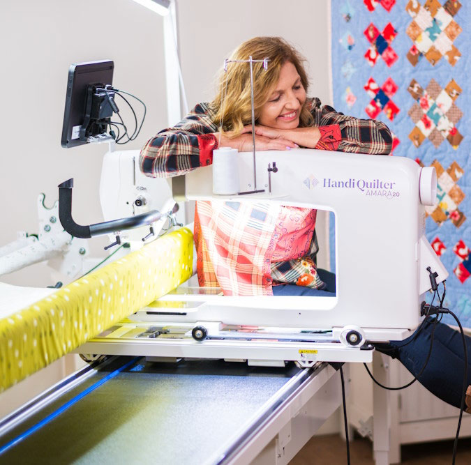 Una gran gama de modelos de máquinas de acolchado y sistemas computarizados Handi Quilter para efectuar el acolchado de tus edredones y quilts